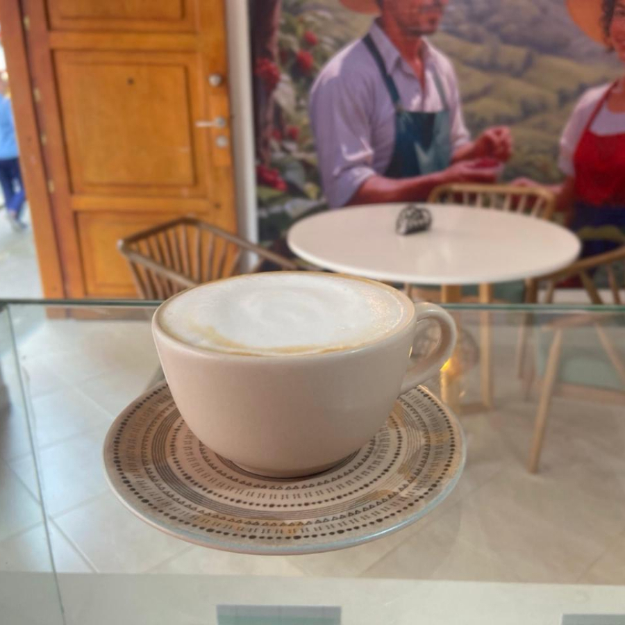 Café Latte realizado con café de origen recien molido, leche al vapor y capa de leche espumosa