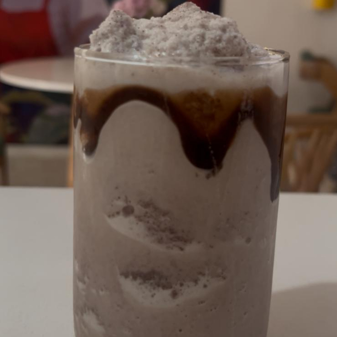 Granizado de chocolate elaborado con cacao artesanal, hielo triturado y leche