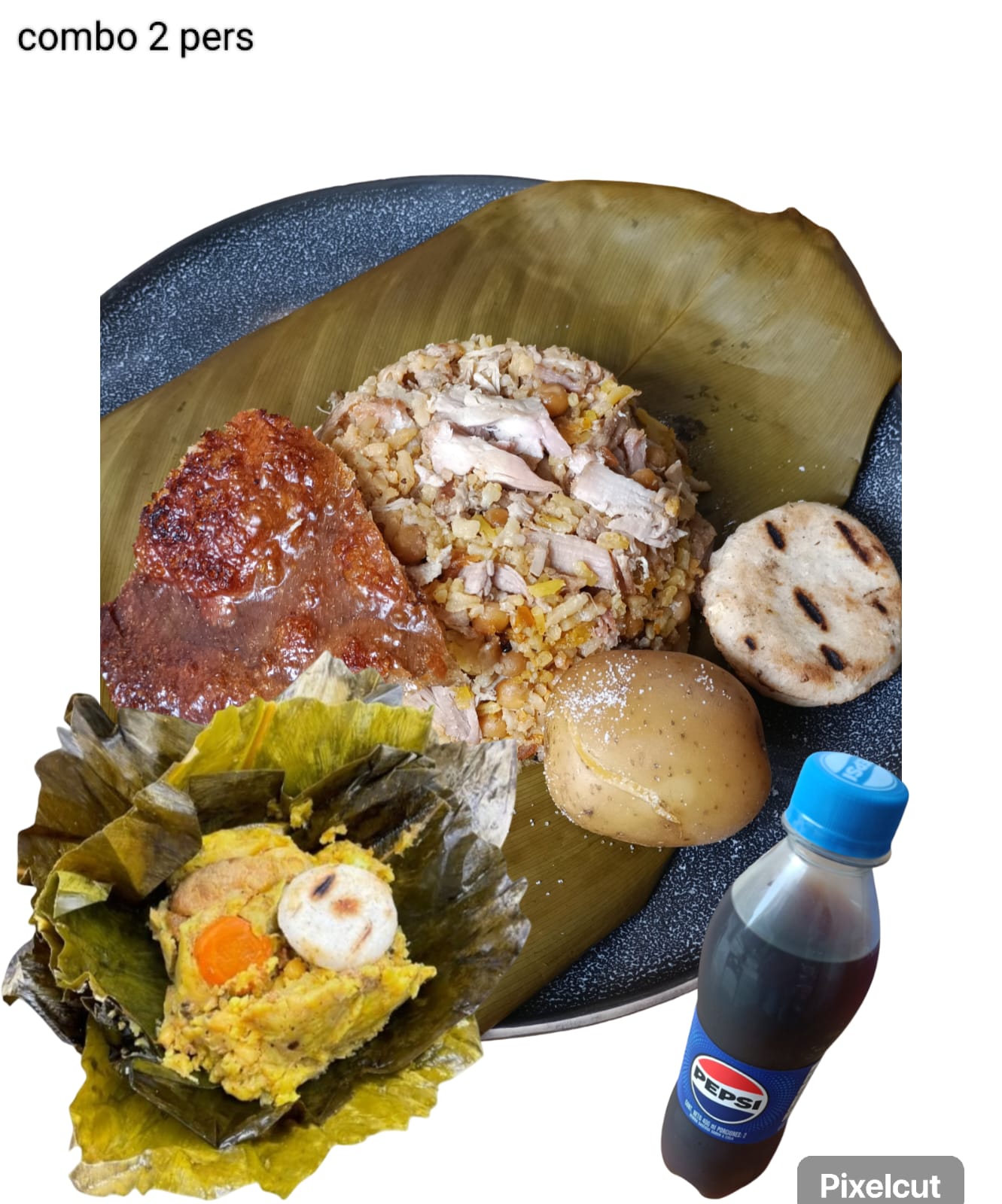 2 Deliciosos tamales tolimenses medianos más arepas y 2 gaseosas 250 ml