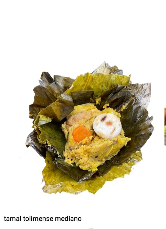 Rico y exquisito tamal tolimense maza y arroz, arveja, carne de cerdo, pollo, tocino y huevo.