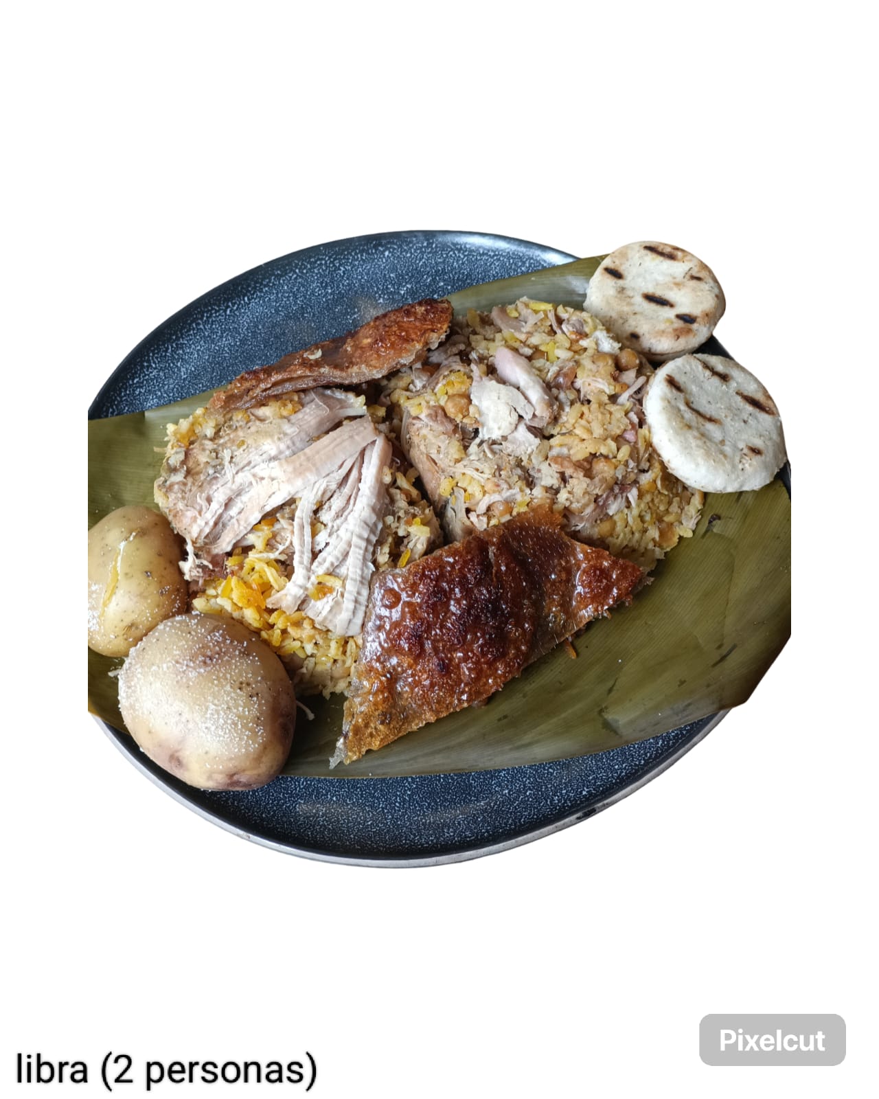 2 Tamales tolimenses más lechona 1 lb más 3 chorizos de cerdo más arepas más papas más cuero crocante y gaseosa 1.5 L