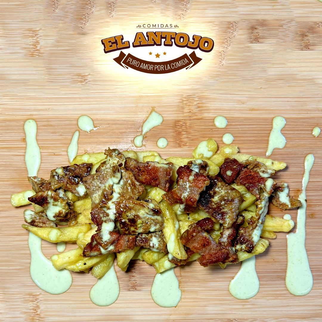 200 grs Papas a la Francesa, 60 grs de Res, 60 grs Chicharron
