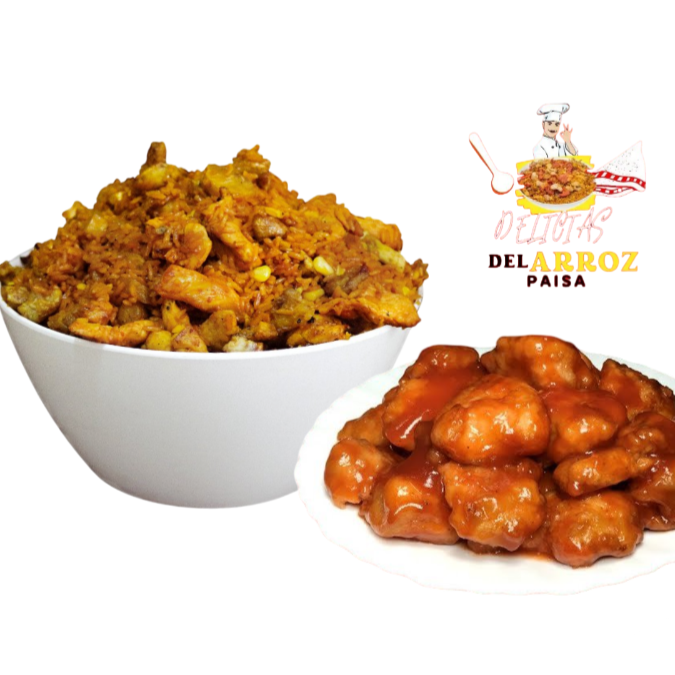 Arroz Paisa Para 2 Personas Pollo Cerdo Costillas Chorizo Plátano Maduro Maicitos Más un 1/4 De Pollo Más Papas