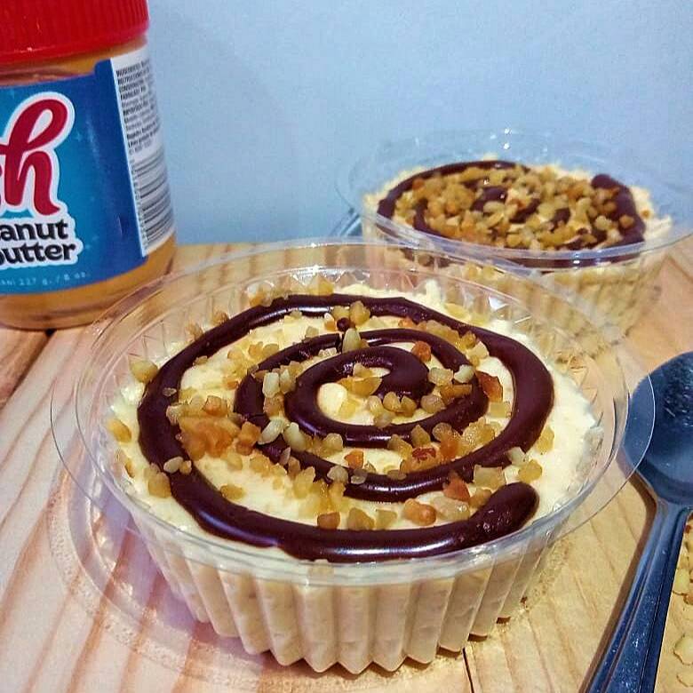 Mousse de crema de maní, topping de chocolate y maní triturado.