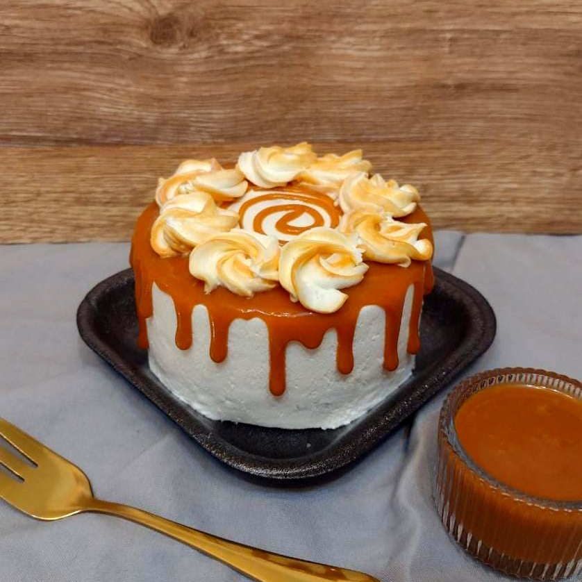 Exquisita Combinación: fino ponqué de vainilla relleno de dulce de leche, cubierto de una delicada cream cheesse y drip de salsa de arequipe.