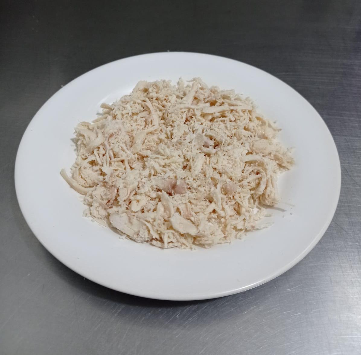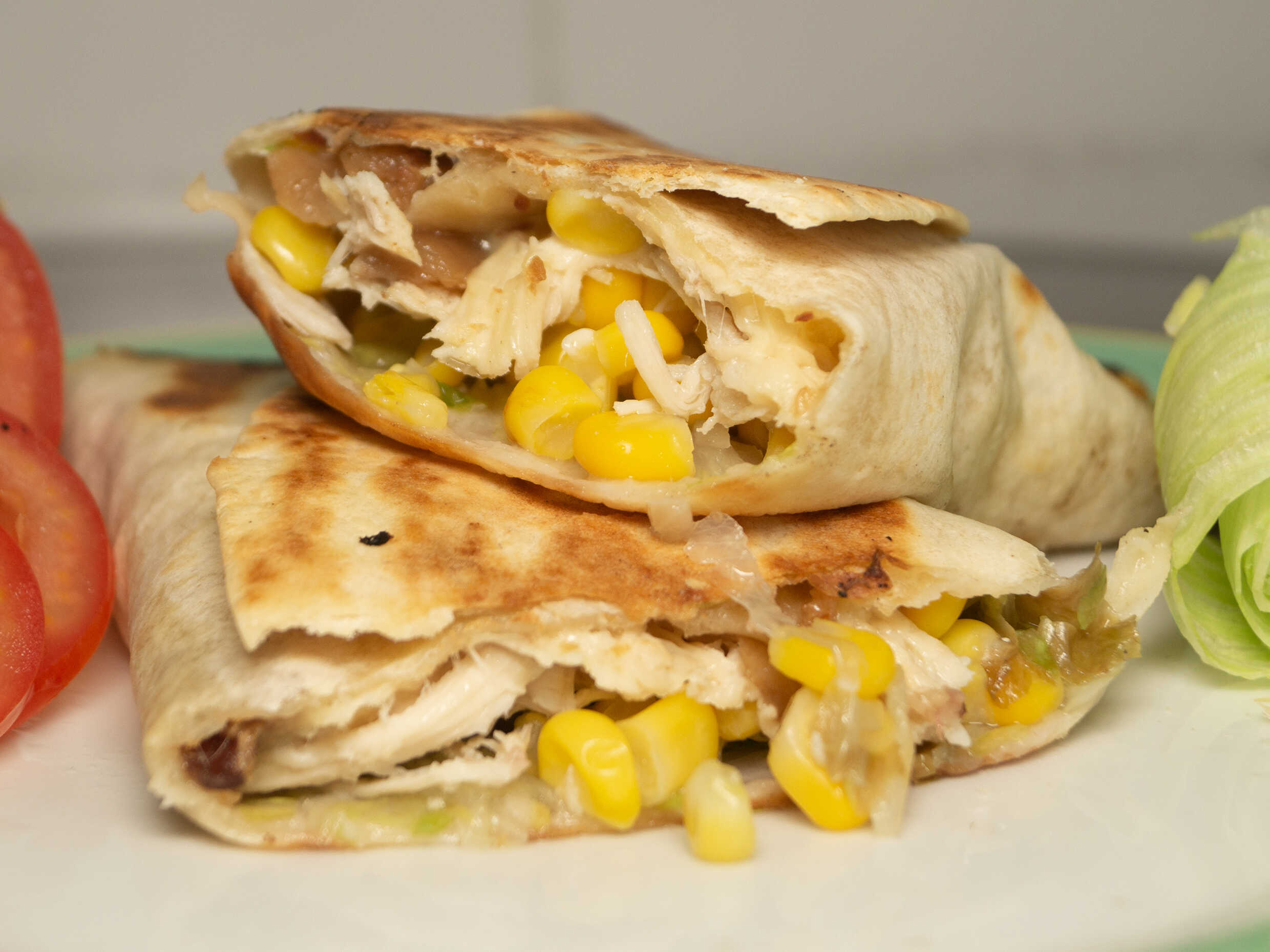 Pollo desmechado, queso mozzarella, tocineta, lechuga, maíz dulce, sour cream, salsa showy y mermelada de piña.