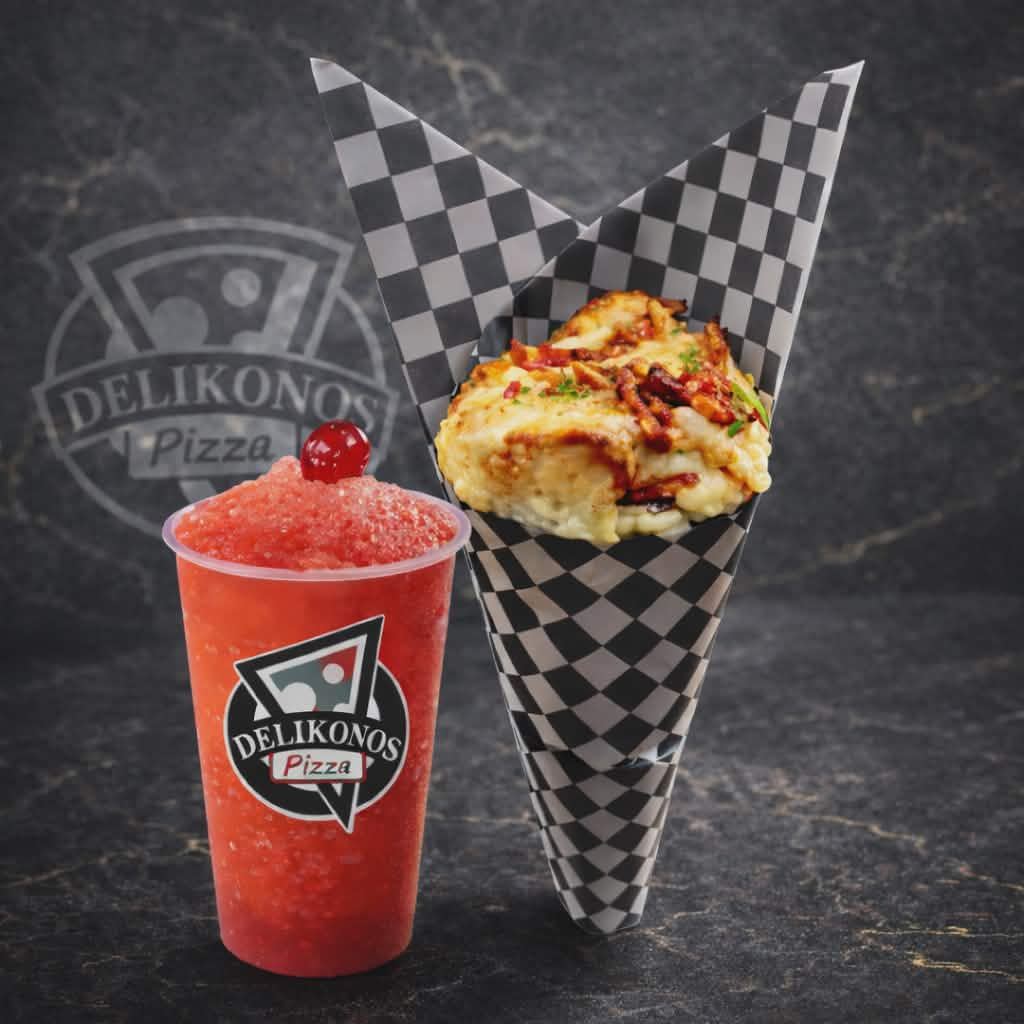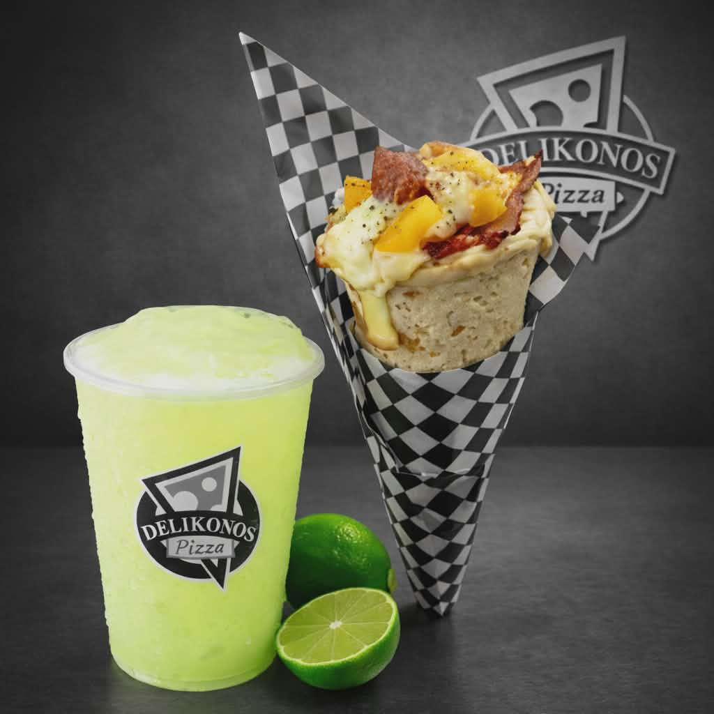 pizza cono pepperoni rellena de doble queso mozarela acompañado de limonada de cereza