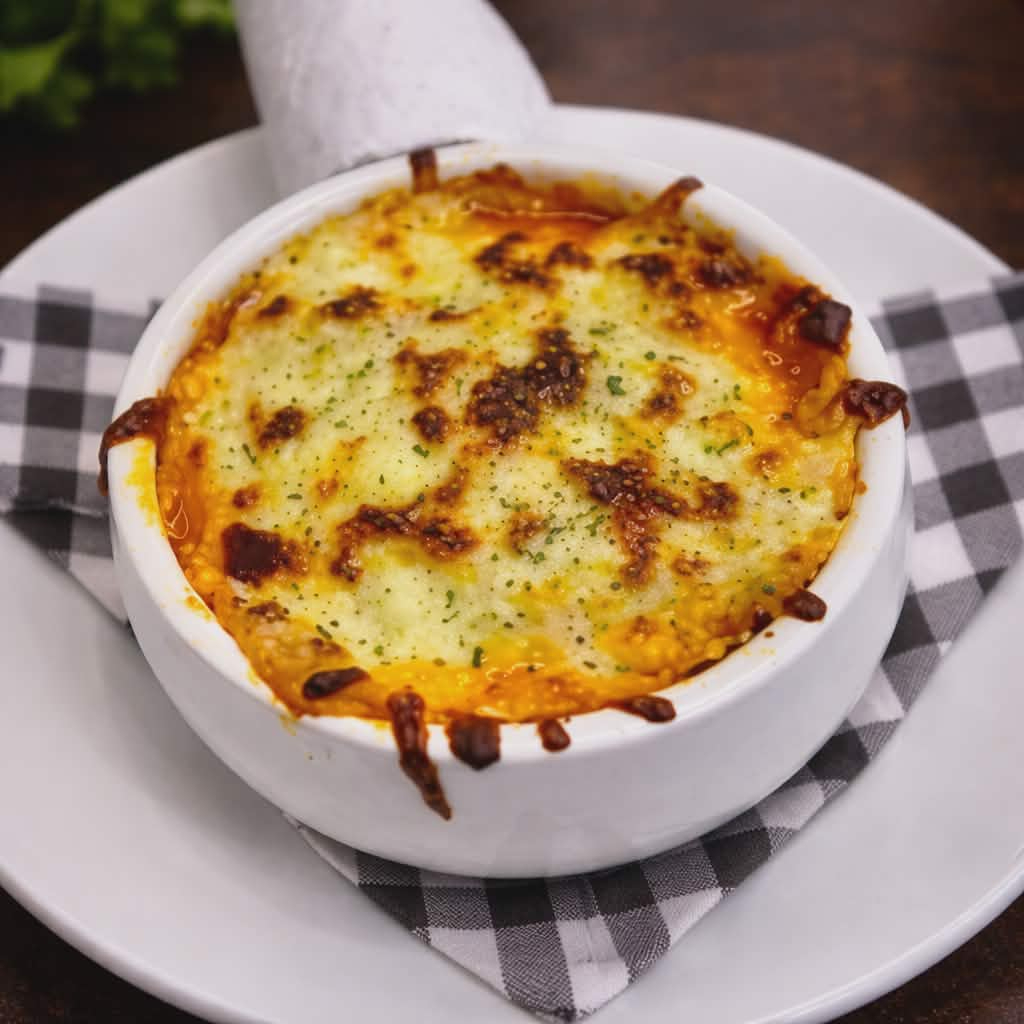 pasticho de carne boloñesa, tocineta, salsa bechamel, queso mozzarella, pasta de lasaña y jamón.