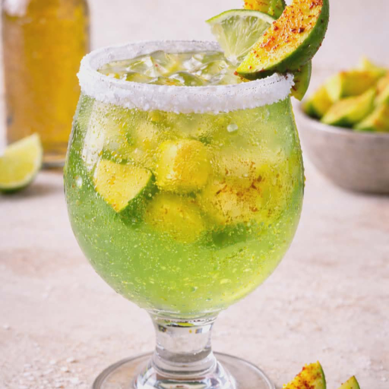 Soda de mango michelada con fruta de 16 0z.