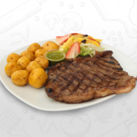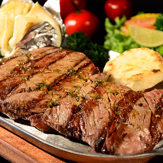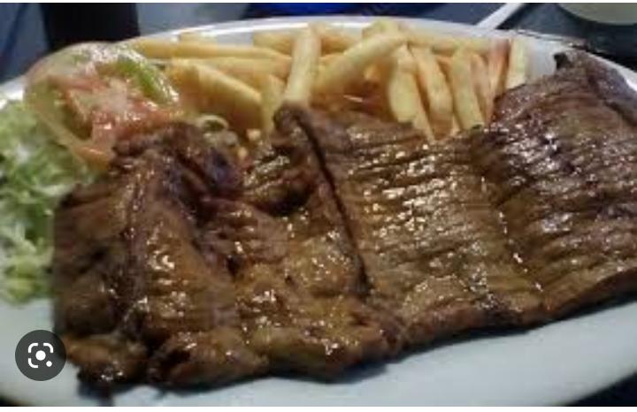 Churrasco de 170Gr, Acompañado de Arepa con quesito, Ensalada, Papas casco o Criollita.