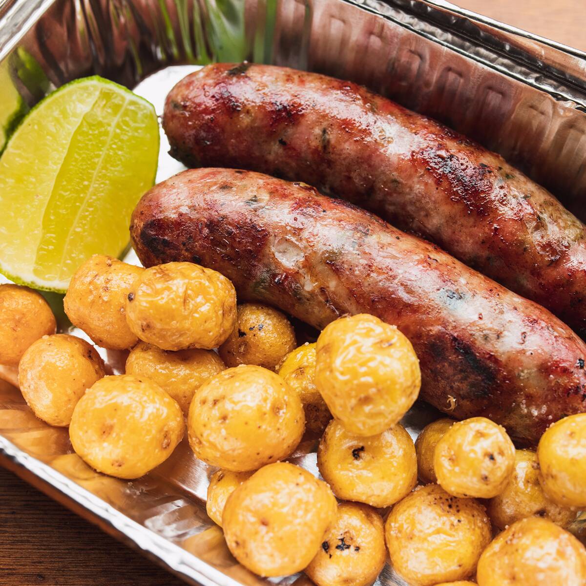 Longaniza , Acompañado de Arepa con quesito, Ensalada, Papas en casco o Criollas.