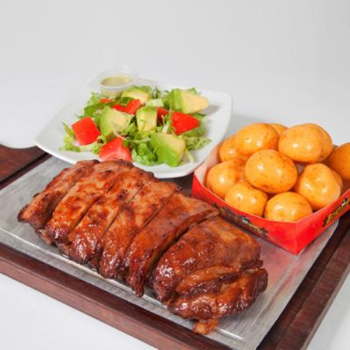 Costillas Especiales 300Gr, Acompañas con Ensalada, Platano, Croquetas de yuca o Criollas.