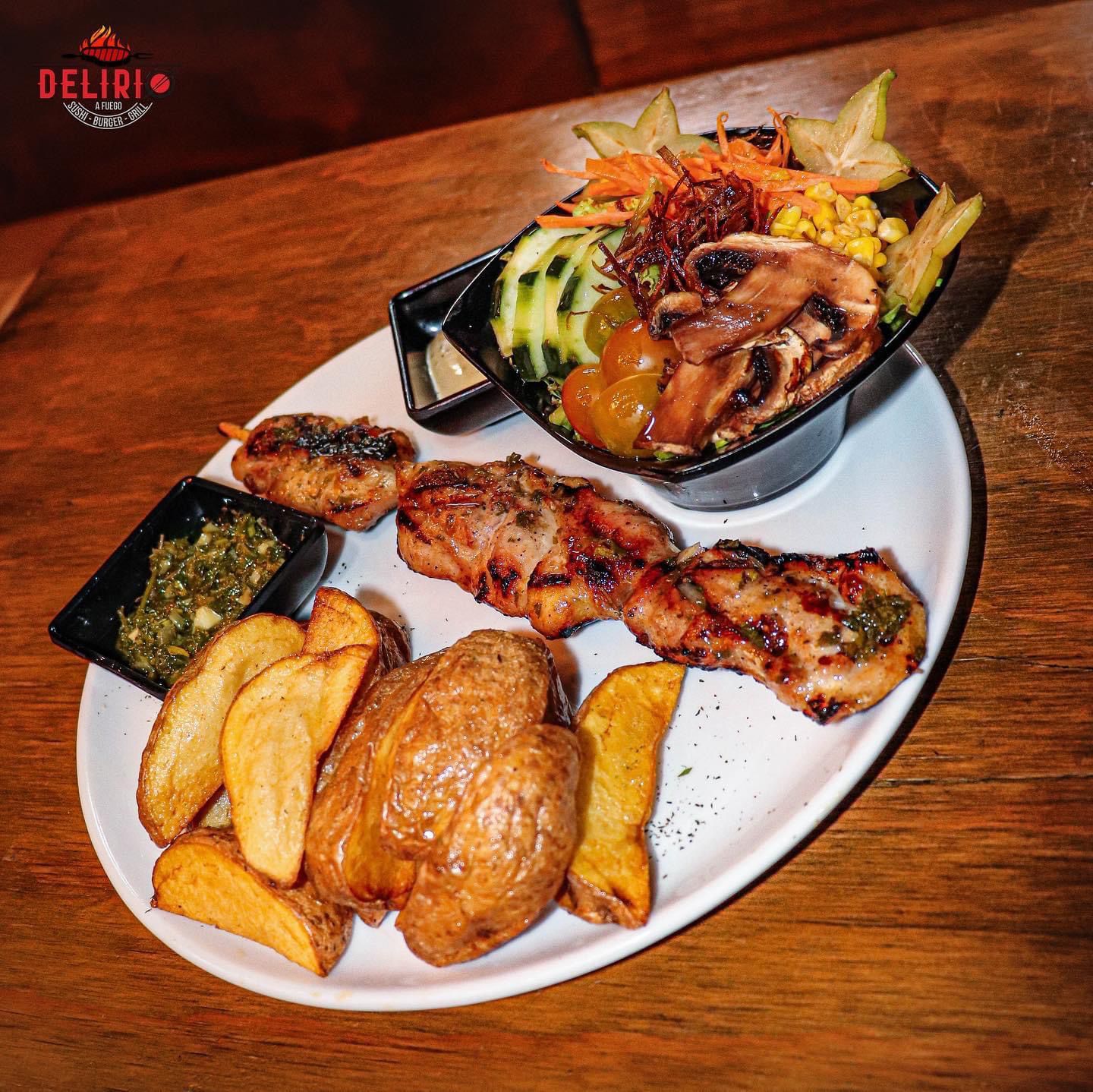 250 gr de contramuslo de pollo jugoso con chimichurri artesanal, acompañado de ensalada especial de la casa, papas a la francesa, casco o vapor con sour cream cremoso de la casa y tajín.