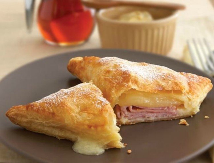 Hecho con masa de hojaldre, lleva jamón, piña y cuajada.