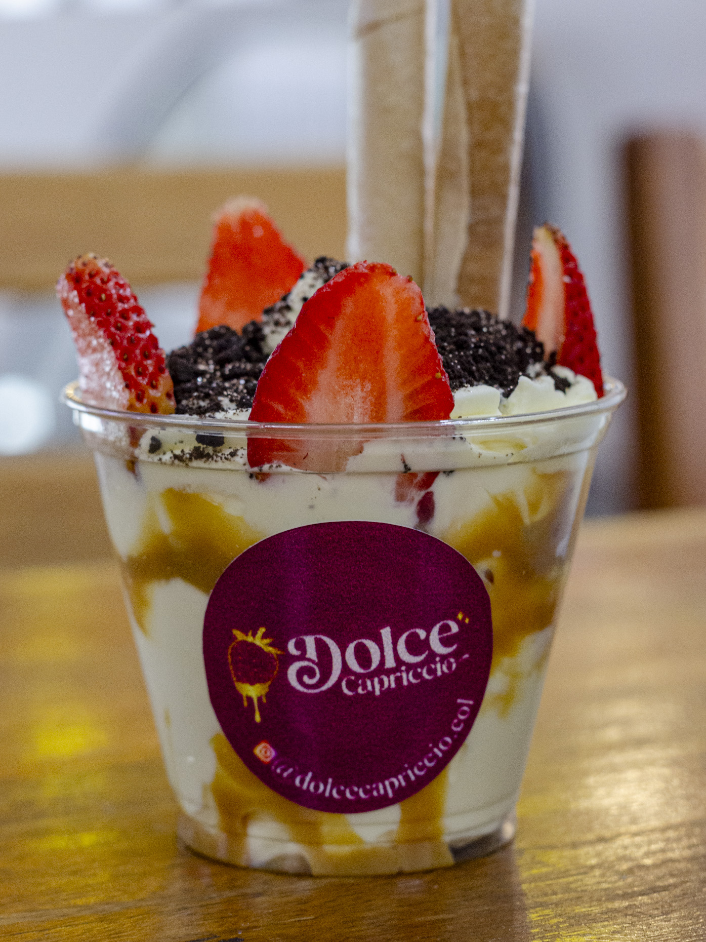 Deliciosas fresas con crema acompañadas con leche condensada y arequipe + 1 topping a elección