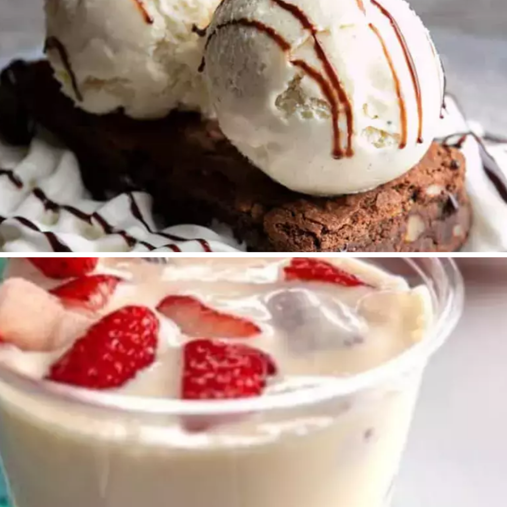 DOS BROWNIE CON HELADO*1 + FRESAS CON CREMA 12 ONZAS*1