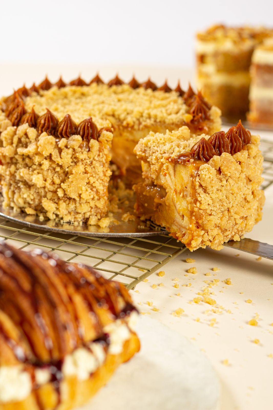 Pastel hojaldrado con arequipe y queso campesino.