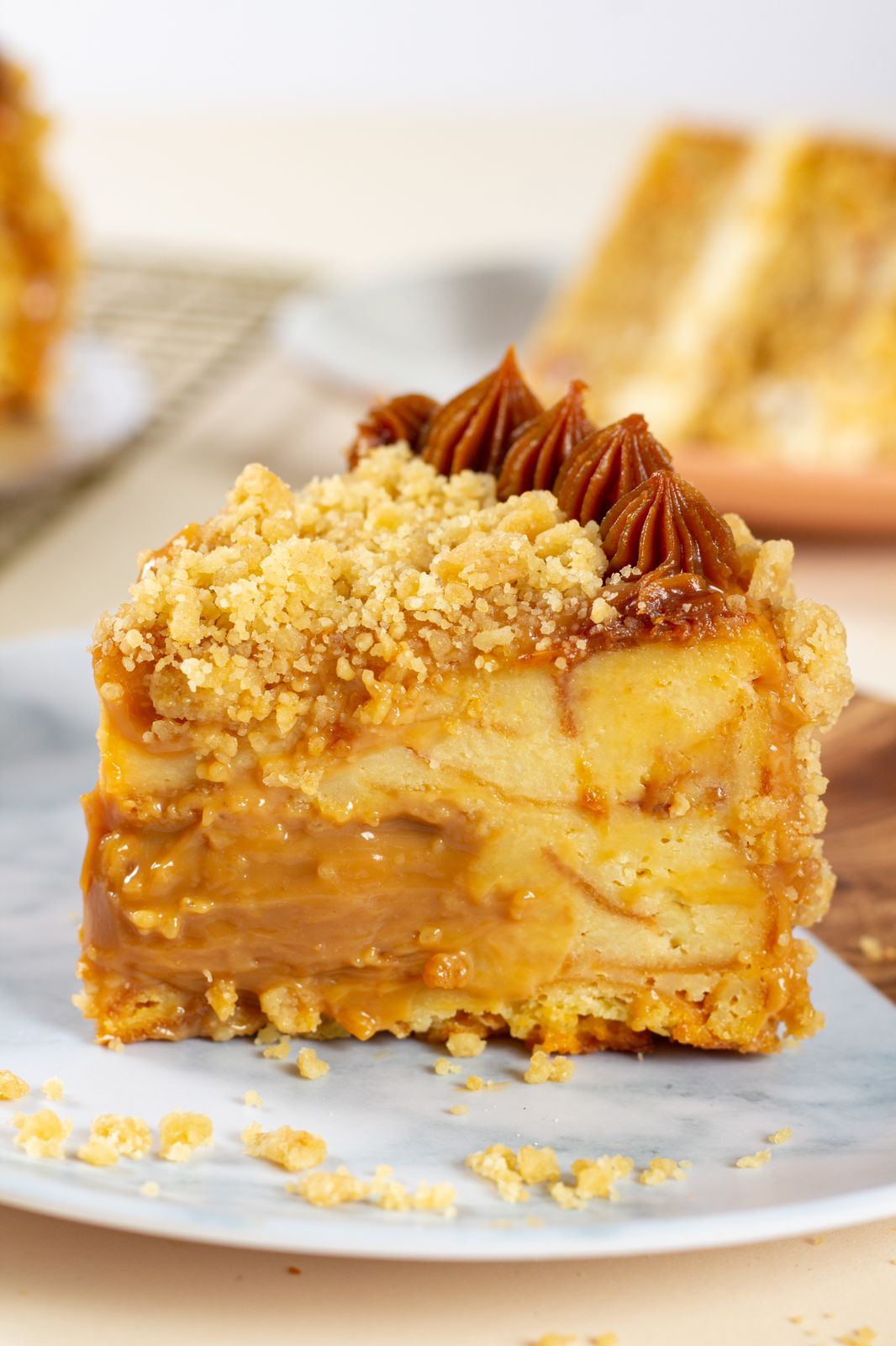 Deliciosa torta rellena de arequipe y con la más perfecta mezcla de almojábanas.