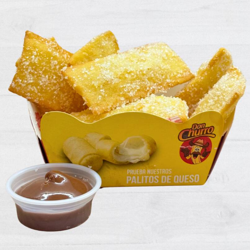 10 Churros delgados de 7 cm, azucarados y con una copa de 1/2 onza de salsa a elección.