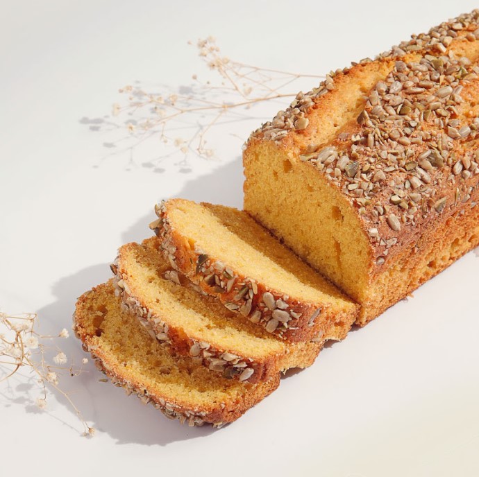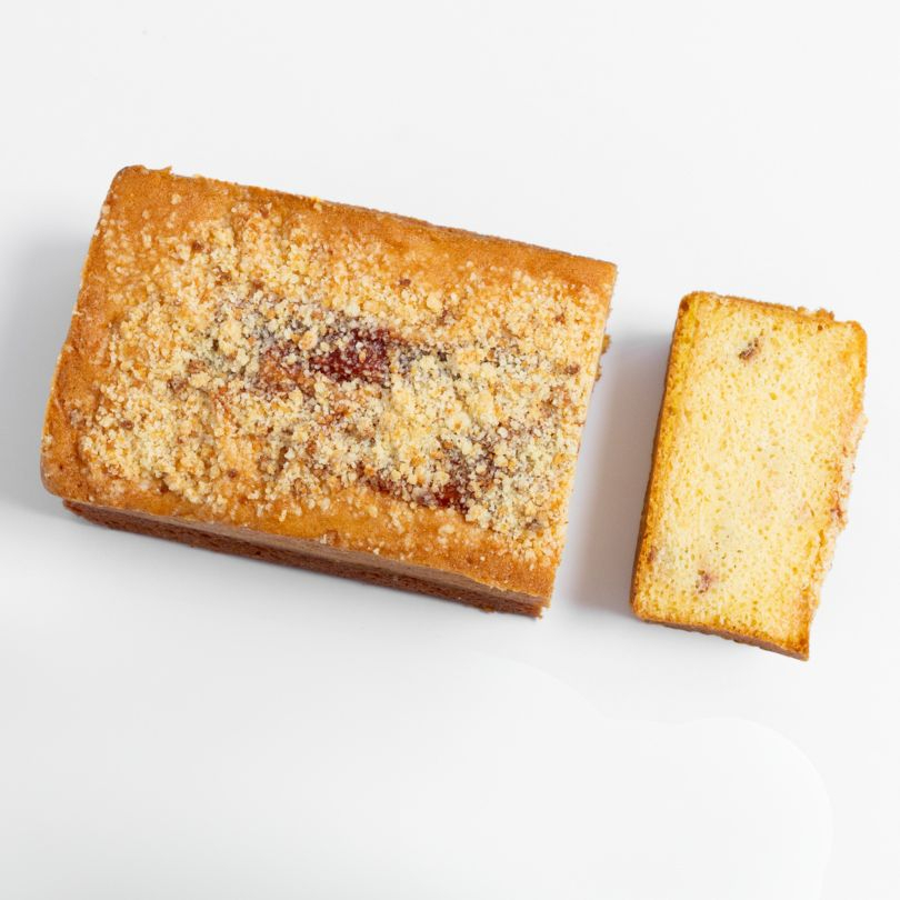 Esponjosa torta casera a base de harina de maíz y queso con jalea de guayaba y crotones de almojábana. (10 porciones).
