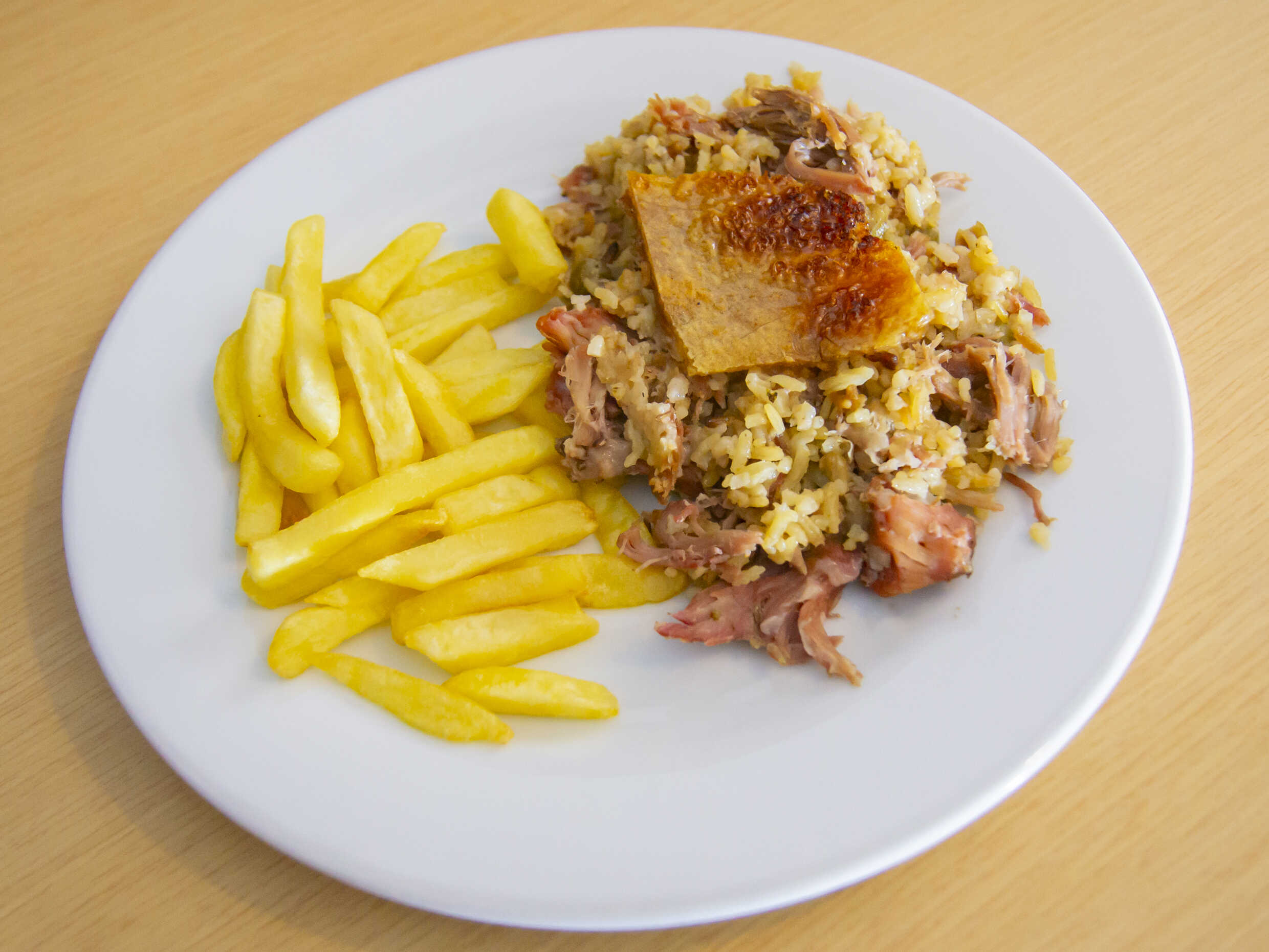 Lechona 200 g acompañada con papas a la francesa