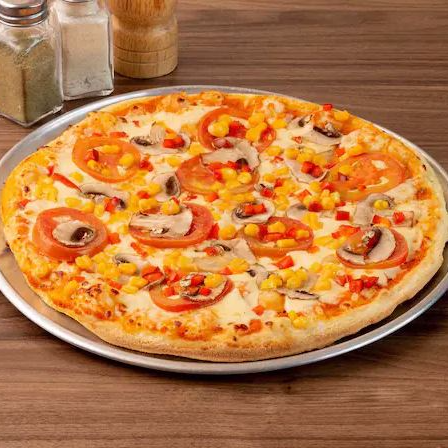 Pizza tradicional con queso mozzarella, salsa napolitana y 4 vegetales de tu elección