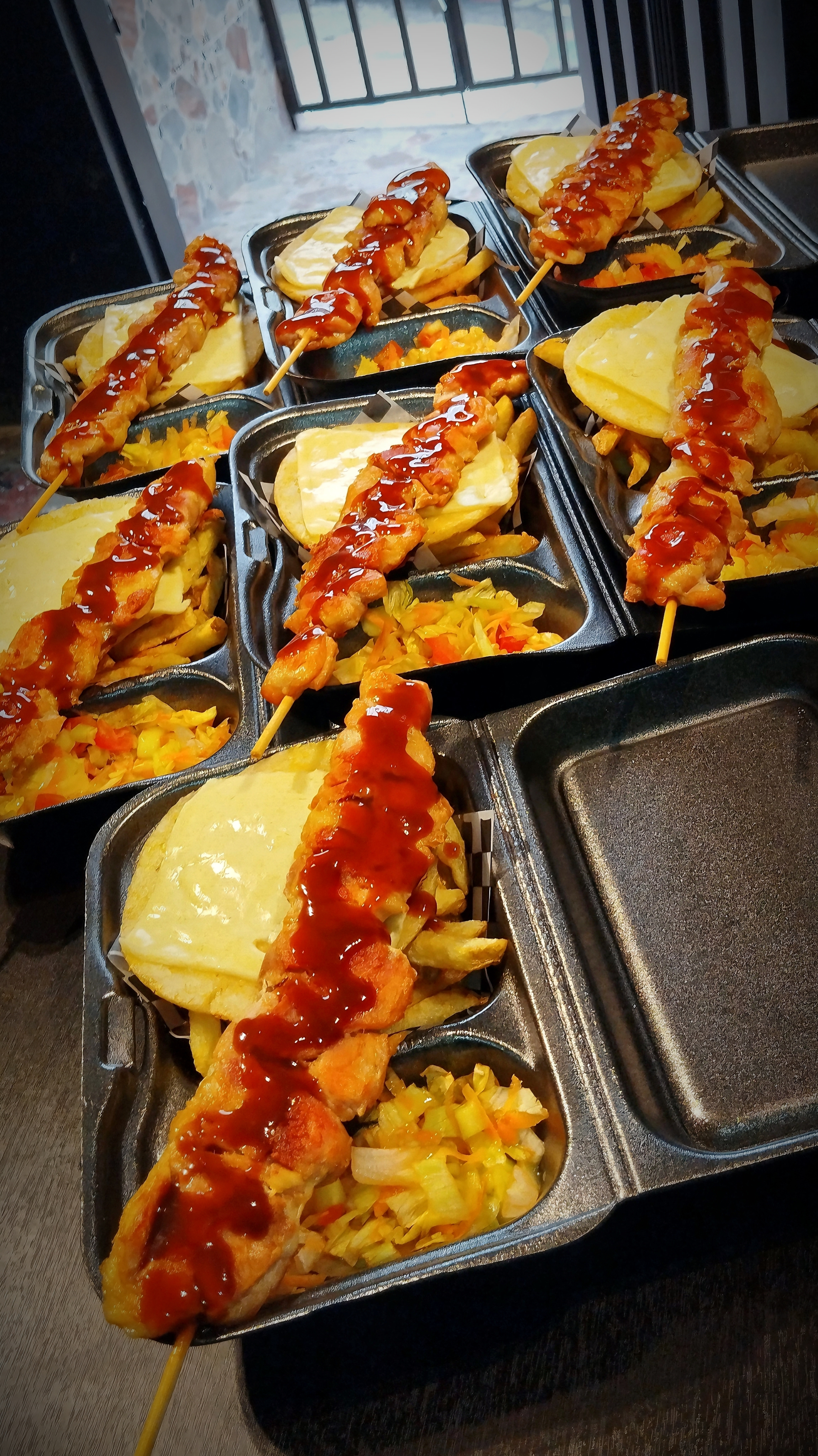 Pincho de pollo de 250 g con un toque ahumado, papas a la francesa, arepa con queso mozzarella y ensalada fresca. Con salsa BBQ clásica.