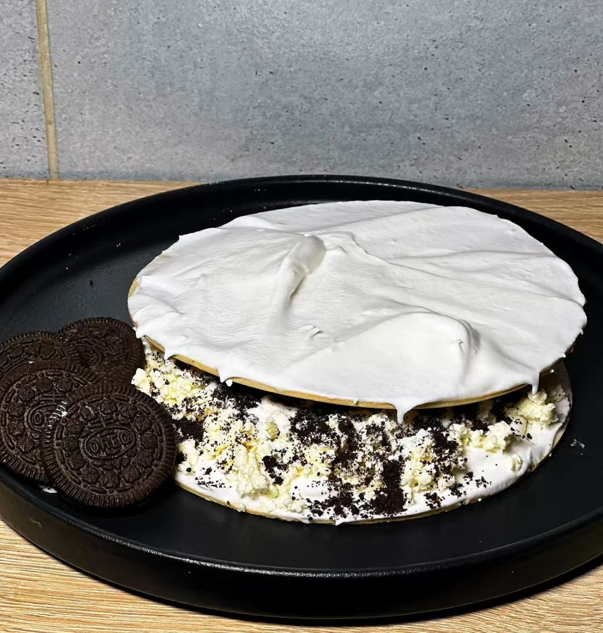 Oreo, leche en polvo, queso y crema de la casa.