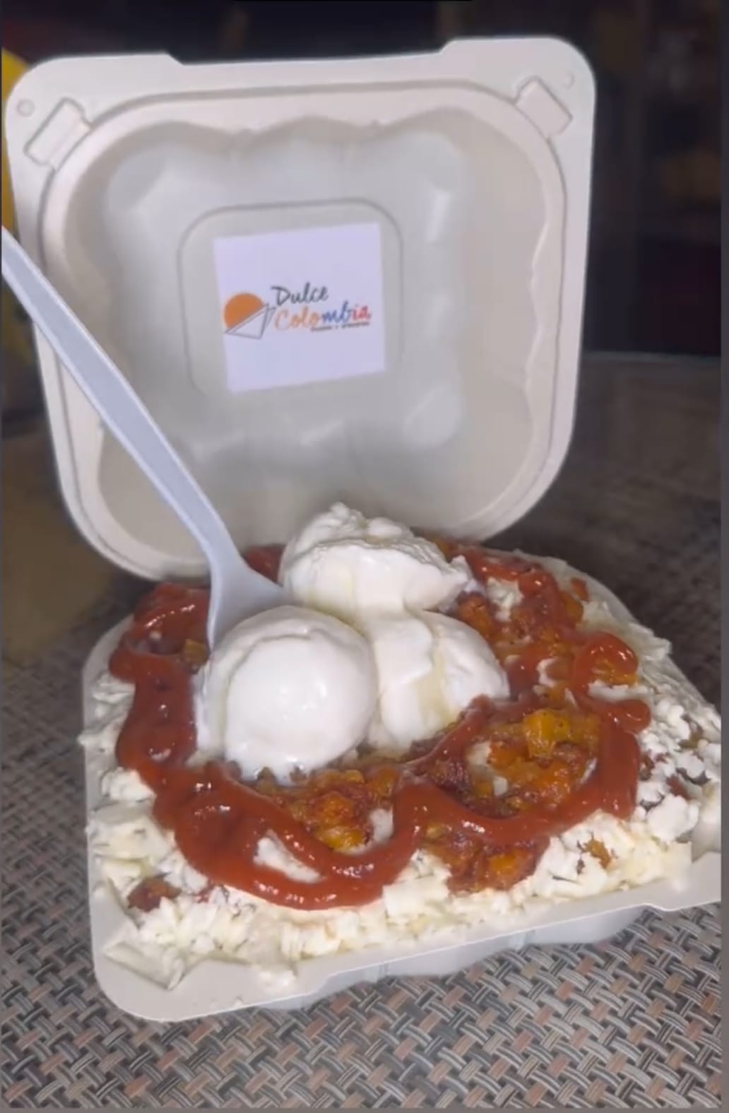 Milo, leche en polvo, queso y crema de la casa.