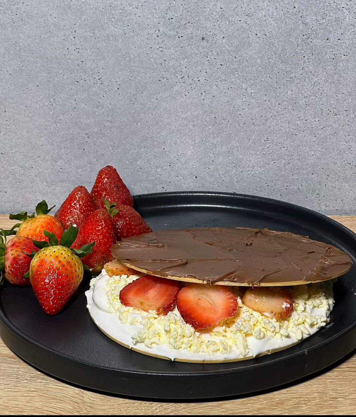 Fresa, Nutella, queso y crema de la casa.