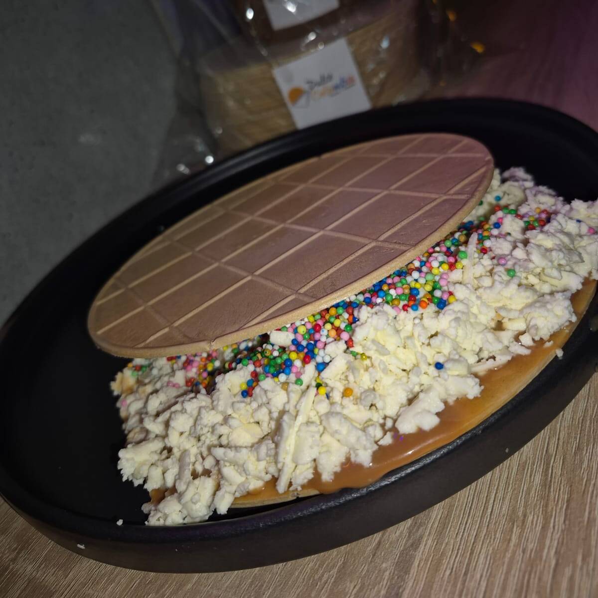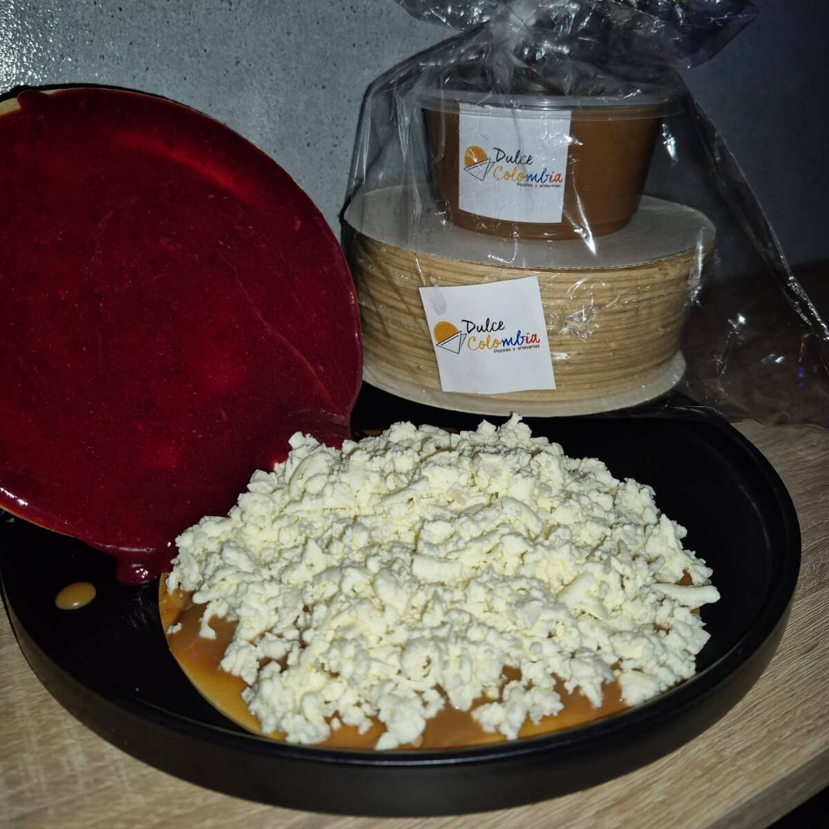 Arequipe, queso, reducción de frutos amarillos y crema de la casa.