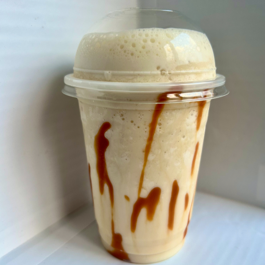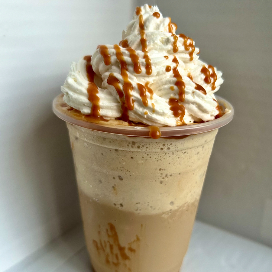 Delicioso café helado cremoso, salsa de arequipe y crema chantillí.