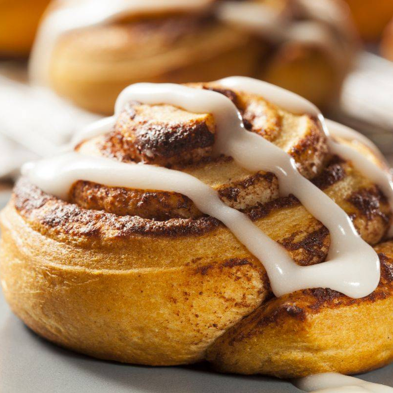 Delicioso postre de pan dulce enrollado en forma de caracol con sabor a canela, y una exquisita crema de frosting a base de queso crema.
