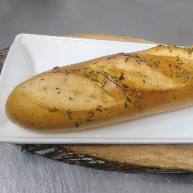 Delicioso pan de Orégano con una corteza semi dura, suave por con un sabor particular, contiene pasta de orégano, ideal como guarnición en sus comidas o acompañante en una dieta balanceada.