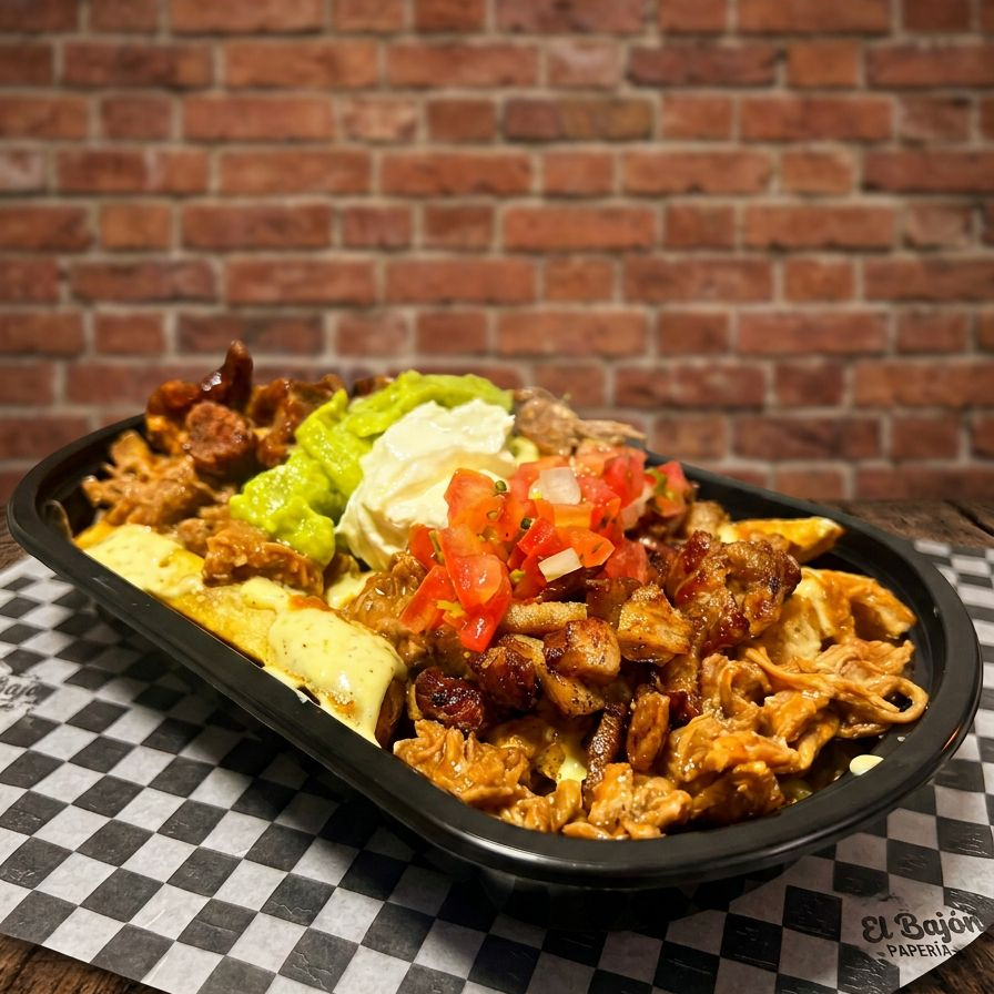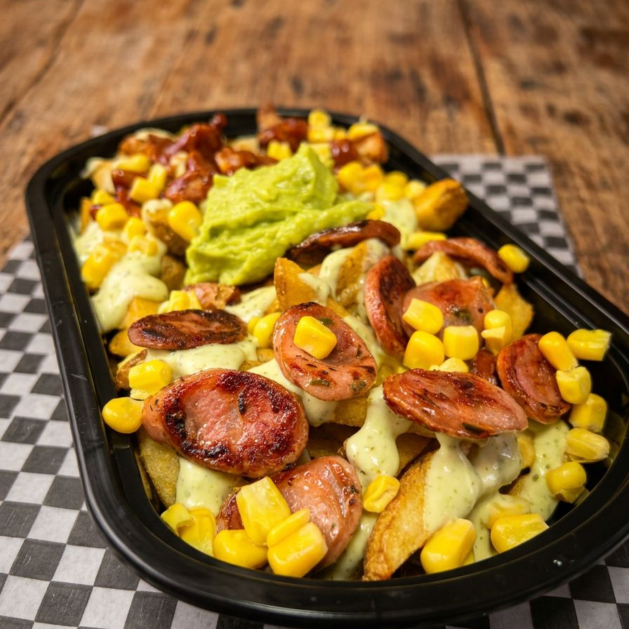 Chicharrón Chorizo Maíz dulce Guacamole Papa francesa artesanal Salsa el bajón