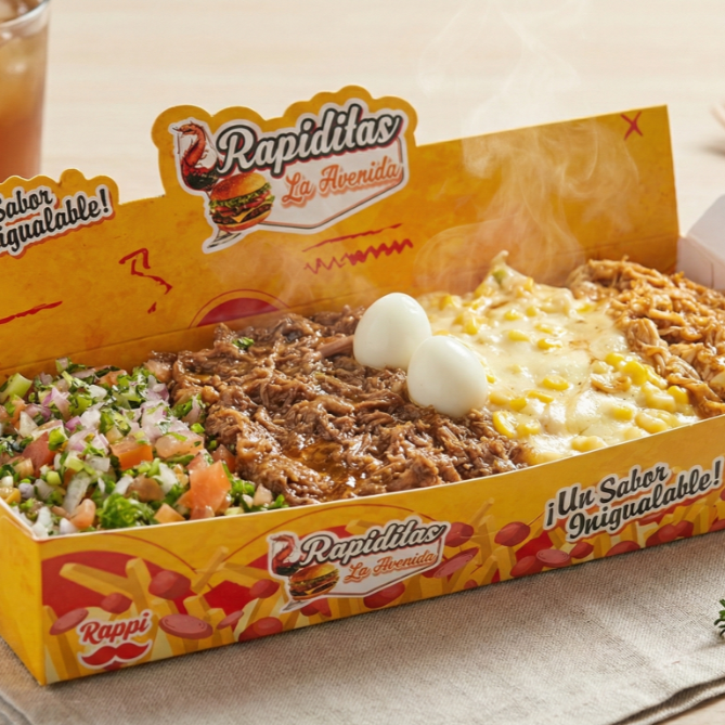 500gr de ppas aprox. salchicha, carne desmechada, maicitos, queso, huevo de codorniz, pico de gallo y salsas