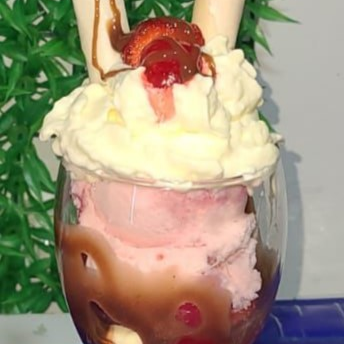 3 bolas de helado, chantilly, barquillos, cereza.