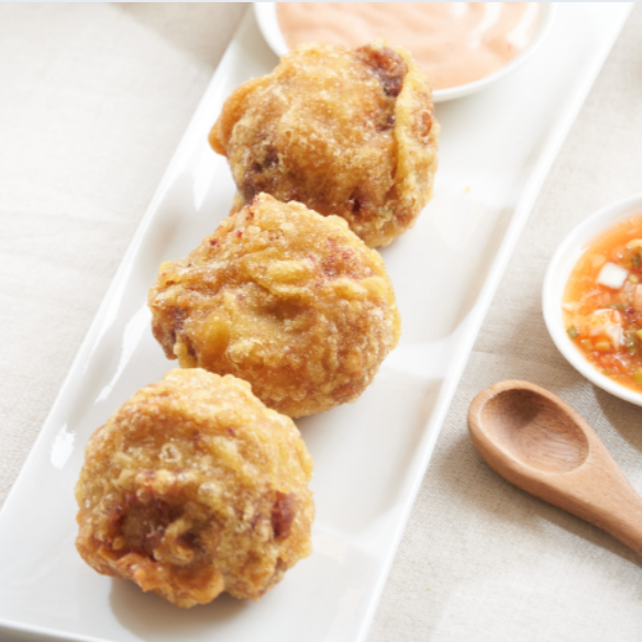 Papa frita, rellena de papa, carne y verduras. 1 unidad.