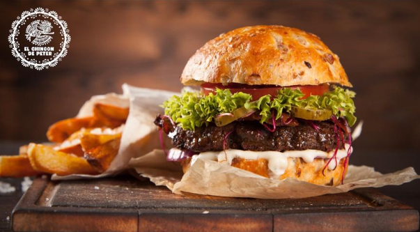 Pan artesanal, tocineta, queso mozzarella, lechuga, pepinillos, huevos, salsa de la casa, chorizo.