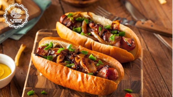 Pan artesanal, salchicha Zenú, queso mozzarella, tocineta, jamón, lechuga, huevo de codorniz, salsa de la casa.