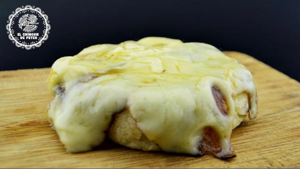 Pan artesanal, porción de chorizo, queso mozzarella, trozos de aguacate, cebolla morada encurtida, tomate, salsa de la casa.