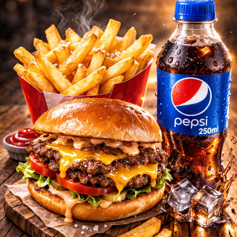 Hamburguesa Clásica*1 + Papas a la Francesa*1 + Gaseosa Postobon 250 Ml*1
