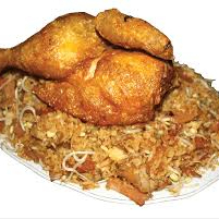 Porción de arroz para 4 personas (1 kilo) + papa francesa + 6 alas de pollo .