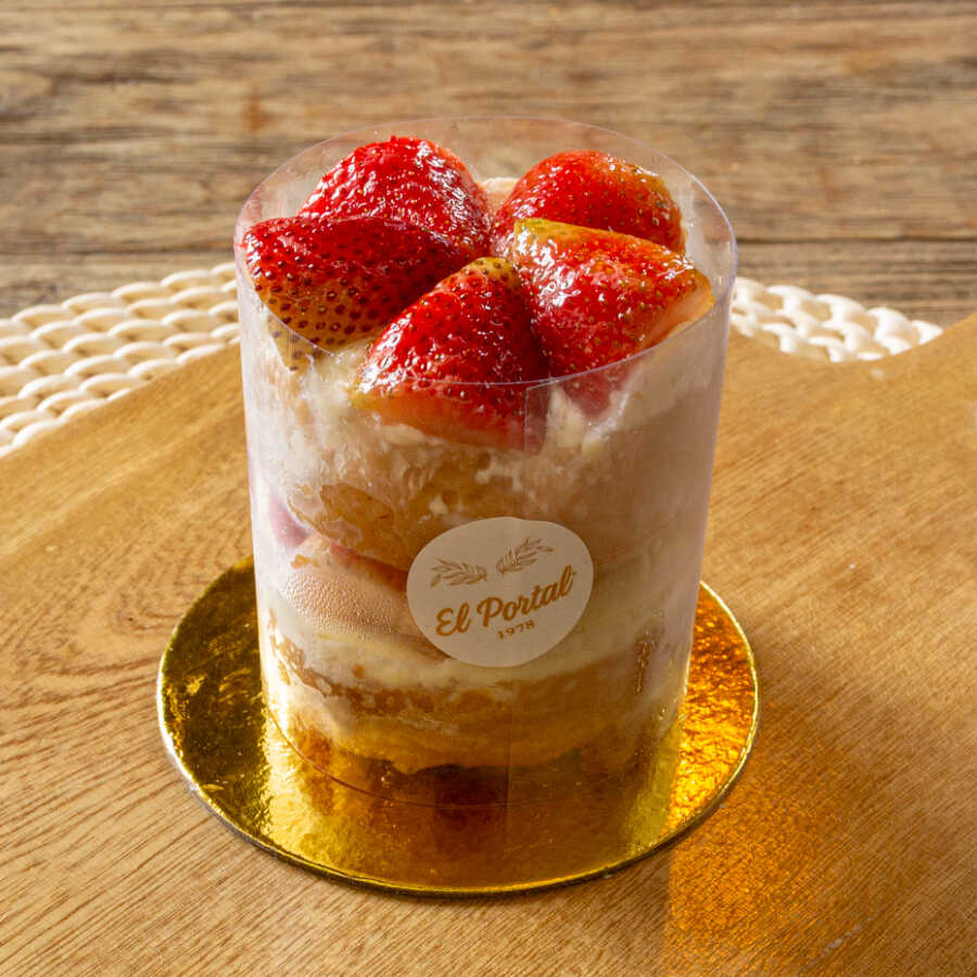 Nuestro clásico postre en capas de bizcochuelo de vainilla, crema chantilly y fresas naturales. va cubierto con fresas y salsa de fresas. por su suavidad, sabor y frescura es uno de los postres preferidos de todos en todas las épocas. 1-2 porciones.
