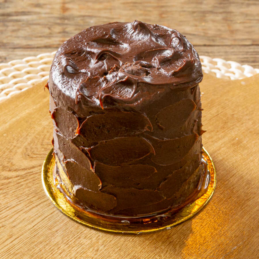 Bizcocho de chocolate en 2 capas cubiertas y entreteladas con una deliciosa mezcla de chocolate con sabor ligeramente intenso y arequipe. 1-2 porciones.