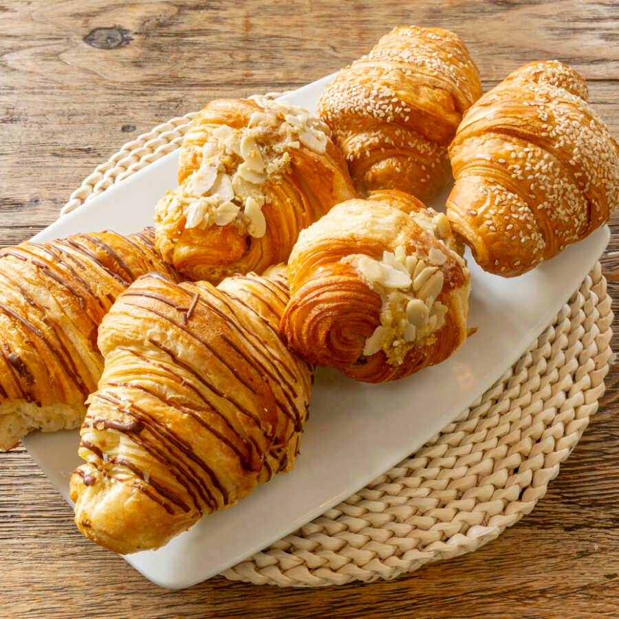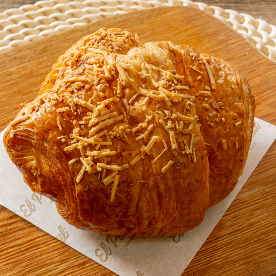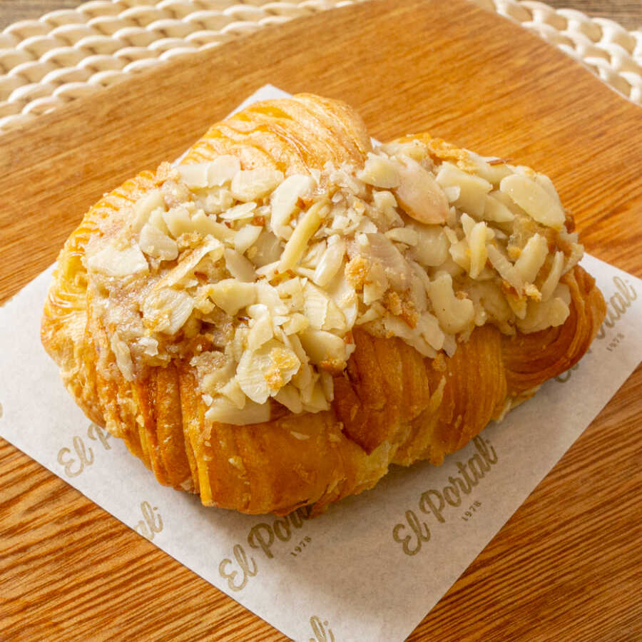 : Elaborado a partir de mantequilla 100 natural, relleno de crema pastelera de almendras.