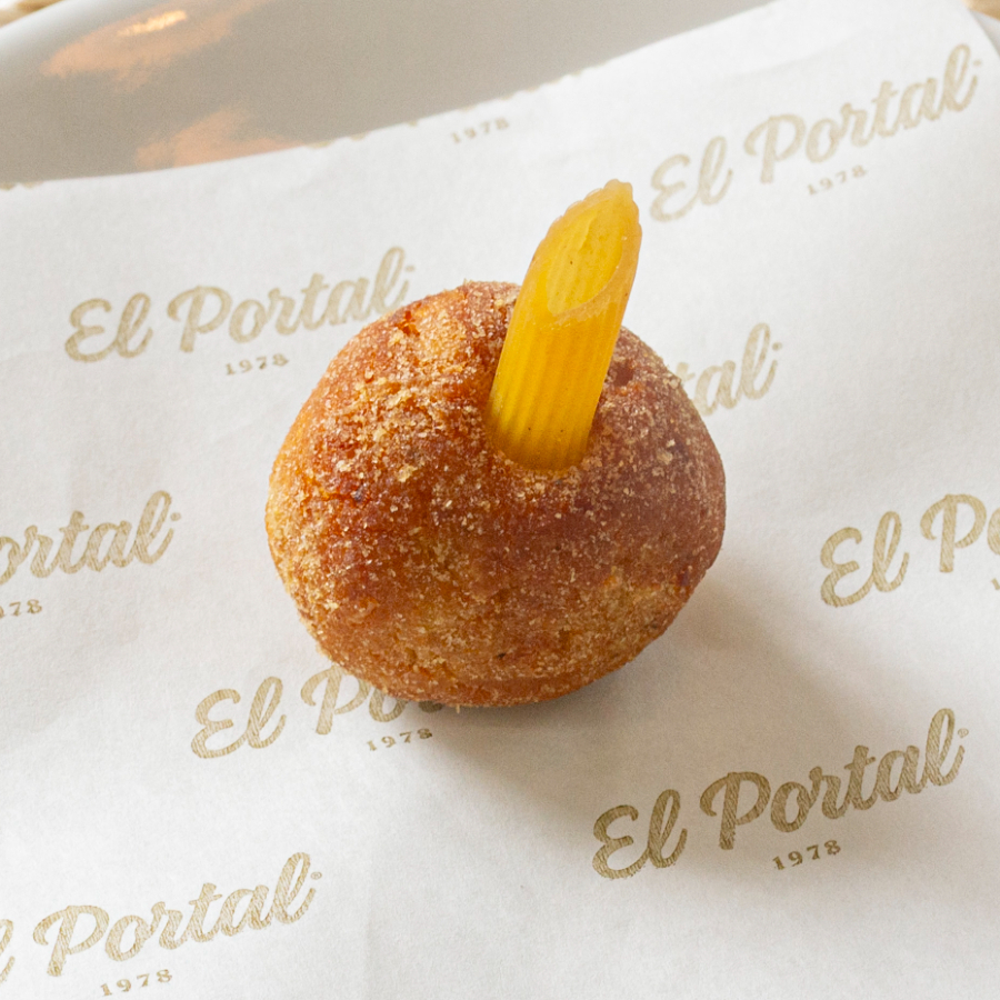 Croqueta hecha con pollo, porción personal.