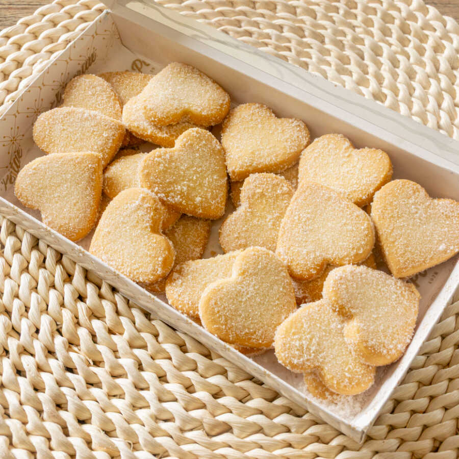 Estuche de galletas de mantequilla en forma de corazón.