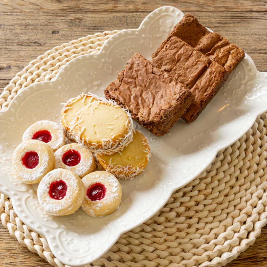 5 Galletas centro rojo, 3 Alfajores, 3 Brownies