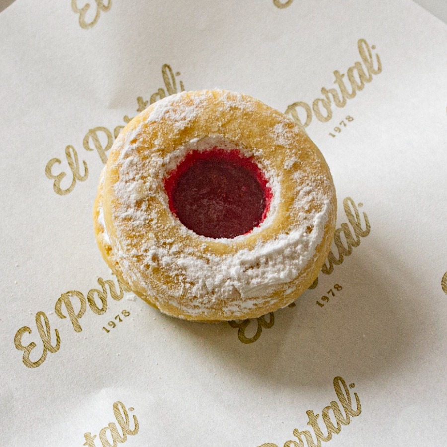 Galleta de mantequilla con centro de mermelada.